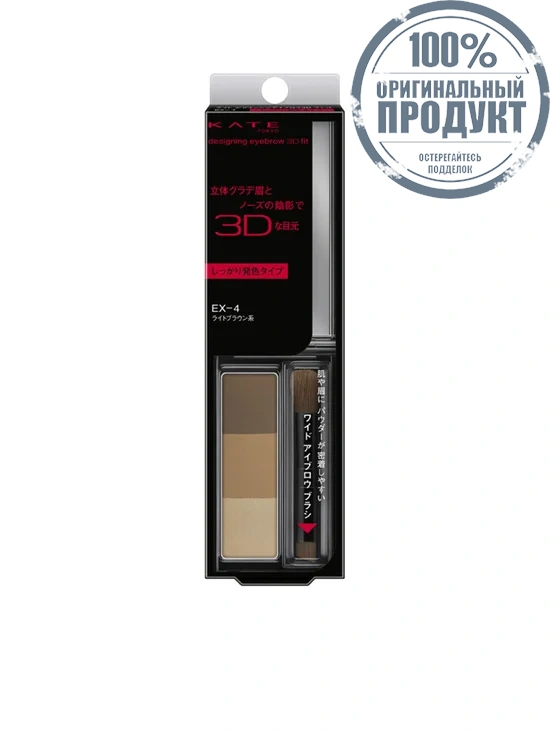 KATE DESIGNING EYEBROW 3D FIT 2 colors. EX-4 light brown. EX-5 Brow. NEW ITEMS From the eyebrow powder series featuring 3D gradation eyebrow and nose shadow powders that create contoured eyebrows and eyes. Recommended if your eyebrows are: spares overall or have hairless area you want to cover well. Product feature.1. Adhesive powder - Contains an oil that increases adhesion. A powder that fits the skin well with defined coloration, is easy to blend, and which lets you draw naturally contoured eyebrows. 2. Wide brush - The eyebrow brush has been upgraded to a larger size. Allows the powder to adhere easily to the skin and eyebrows, so that it is easier to create contoured eyebrows. Can also draw ultra-fine lines with the edge. Creates delicate and natural-looking lines, even on the outer corner.