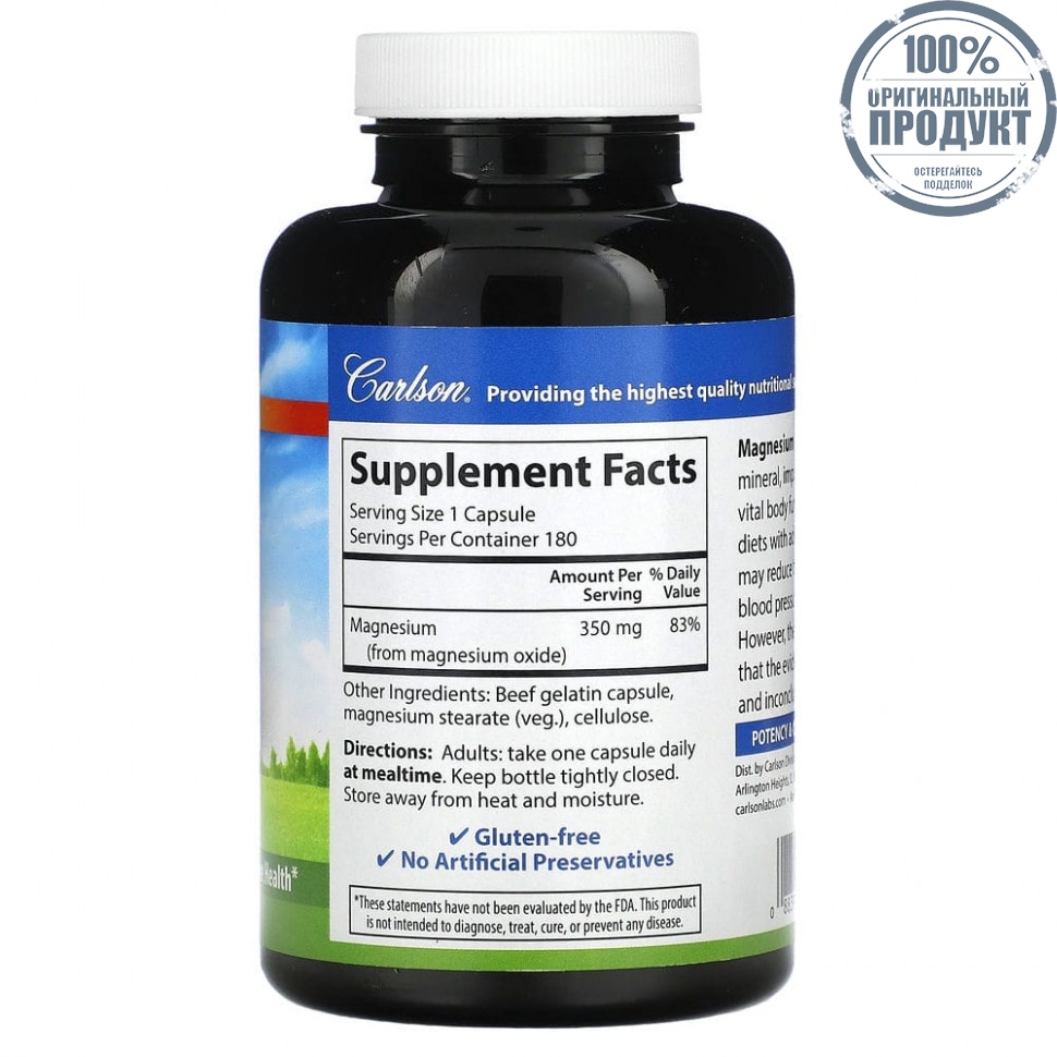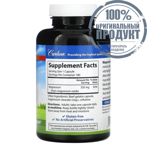 Carlson Labs, магний, 350 мг, 180 капсул