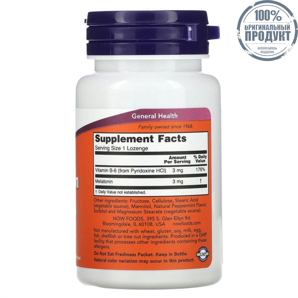 Элемент каталога NOW Foods, Мелатонин, 3 мг, 90 пастилок [16719]