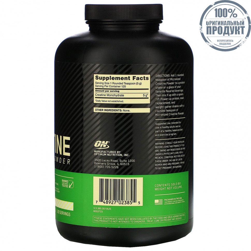 Optimum Nutrition, Тонкодисперсный порошок креатина, без вкуса, 1,32 фунта (600 г) [26000]